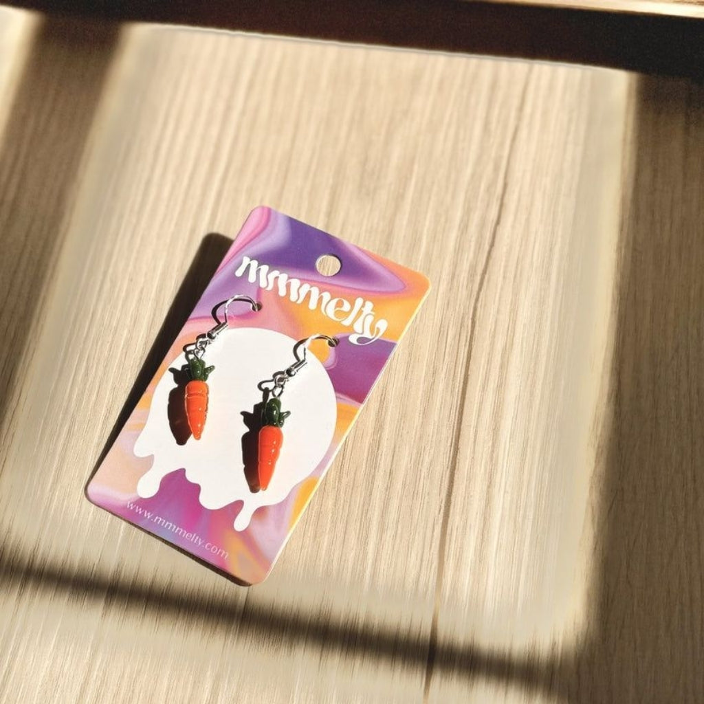 Pair your Carrot Earrings with pastels, florals, denim, or soft spring outfits for a fresh, lively vibe. Ideal for Easter celebrations, farmers markets, garden parties, or adding a quirky twist to everyday wear. Mix and match with other pieces from the mmmelty Foodies Collection like the Lemon Slice or Peach Earrings for a full harvest-inspired look.
